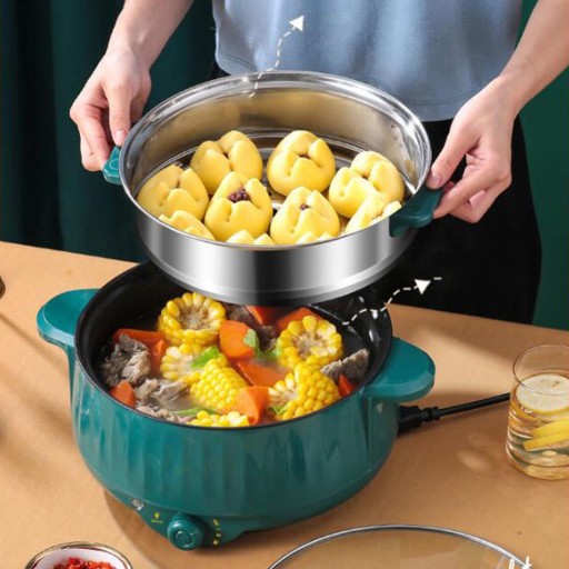 Elektryczny garnek do gotowania Nonstick Przenośna elektryczna patelnia do makaronu Jajka Zielona z parowcem