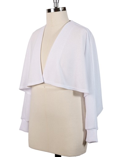 Gustowne kimono sweterkowe, pelerynka z rękawami w kolorze białym z wplecioną połyskliwą nitką.