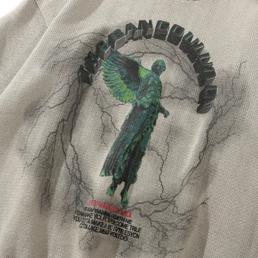 Autumn Winter Men's Dark Statue Printing Knit High Street Fashion Loose Comfortable Versatile Couple Sweater Round Neck Pullover