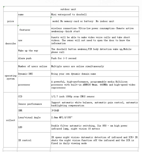 - Zasilanie wideodomofonu: 2xAkumulator typu18650