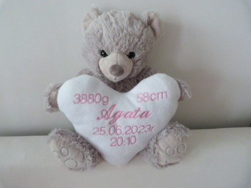 Мишка Тедди, кремовый, сердце, имя, дата, время, вес, длина