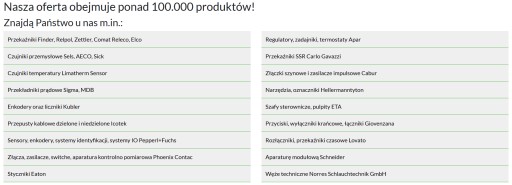 - Przekaźniki Finder, Relpol, Zettler, Comat Releco, Elco