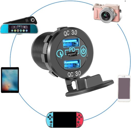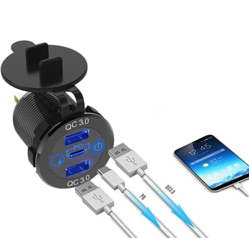 🔆Szybkie ładowanie Dual QC3.0 i PD Type-c: Dostępne są 3 porty ładowania, wielofunkcyjne i szybkie ładowanie, aby spełnić Twoje potrzeby.