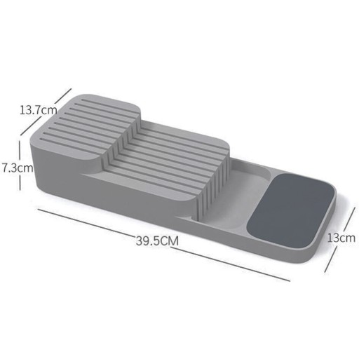 Konstrukcja wkładki na noże kuchenne pasuje do większości standardowych rozmiarów szuflad o głębokości co najmniej 40 centymetrów i wysokości 8 cm. Jej rozmiary pozwalają na komfortowe ułożenie do 9 sztuk noży jednocześnie. Dzięki temu można utrzymywać na nim zarówno małe noże do warzyw jak i większe do pieczywa czy mięsa.Szerokość niespełna 14 centymetrów sprawi, że po umieszczeniu wkładu w szufladzie nadal będziesz miał sporo miejsca na inne sztućce kuchenne.