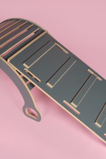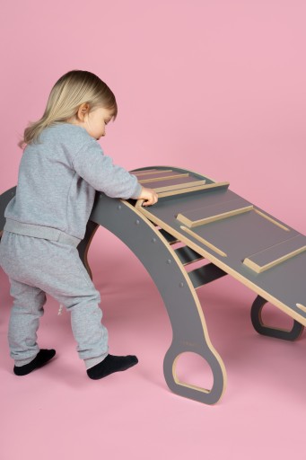 Bujak ze zjeżdżalnią w domu, to plac zabaw IDEALNY! Z jednej strony płyty jest ścianka wspinaczkowa, a z drugiej superśliska zjeżdżalnia. Zjeżdżalnie można też położyć na bujaku i stworzyć RÓWNOWAŻNIĘ - polecamy do tego bose stópki.