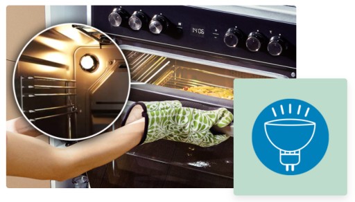 Chcesz zobaczyć, jak przebiega gotowanie, ale nie chcesz otwierać drzwi i marnować ciepła w środku? Oświetlenie halogenowe pomaga dojrzeć całą komorę piekarnika, dzięki czemu możesz mieć oko na swoje kulinarne dzieła przy szczelnie zamkniętych drzwiach piekarnika.