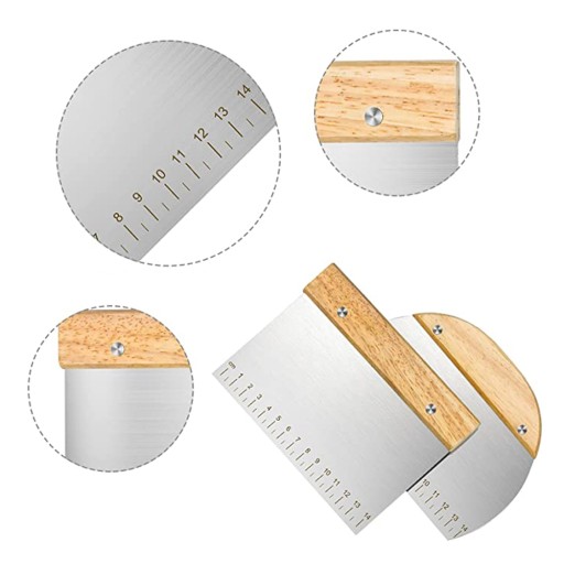 ❤ Doskonały projekt: odważne, grawerowane oznaczenia linijki wzdłuż ostrza są łatwe do odczytania, zapewniając doskonałe cięcie za każdym razem podczas gotowania lub pieczenia. Ostre, nieprzywierające ostrze ze stali nierdzewnej służy do skrobania, nabierania, krojenia, siekania i nie tylko. Ostre ostrze tworzy prosty wzór, który chcesz, i oszczędza czas.
