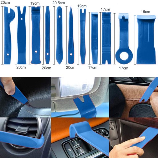 Otwieraki spełniają swoje zadanie nie tylko podczas demontażu tapicerki samochodowej. Idealne również sprawdzi się do otwierania sprzętu elektronicznego na zatrzaski np. pilotów do TV itp. Nie pozostawia śladów otwierania. Dzięki tym ściągaczom rozbierzesz każdy element tapicerki nie uszkadzając jej przy tym. Otwieraki wykonane z mocnego tworzywa (o różnej grubości i giętkości), dzięki nim nie wyszczerbisz rantów tapicerki podczas jej podważania.