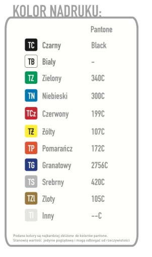 Obok przedstawiamy kolory w jakich drukujemy,