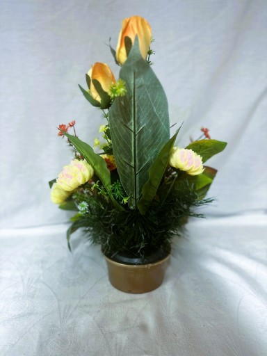 Sztuczne kwiaty, bukiet, wiązanka, stroik na grób, na cmentarz, stroik cmentarny, doniczka