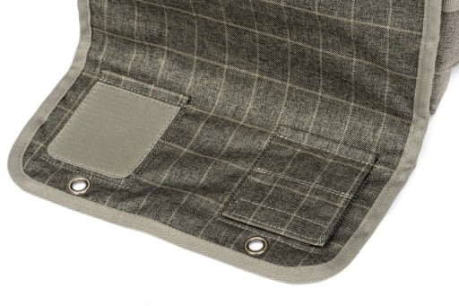 Wewnętrzna strona klapy torby wyposażona jest w "wyciszane" zapięcia na rzepy, które eliminują głośny hałas podczas ich otwierania (przydatne podczas zdjęć w muzeach czy kościołach). Pod klapą umieszczona jest także przeźroczysta kieszonka na zapasowe wizytówki, pozwalające zidentyfikować właściciela torby. Duże, szerokie panele na rzepy pozwalają na trzymanie torby zawsze zamkniętej.