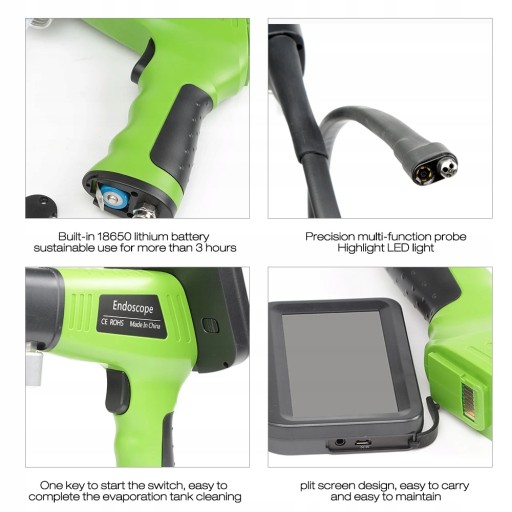 汽车空调清洗枪管路检查摄像头液晶显示屏汽车空调视觉清洗枪管内窥镜蒸发器箱可视清洗枪(绿色)⭐规格:⭐状态:100%全新⭐项目类型:汽车空调清洗枪⭐材质:ABS ⭐颜色:如图所示 ⭐图像像素:640*480 ⭐屏幕分辨率:480*272 ⭐多功能探头外径:15mm ⭐防水:IP67 ⭐电源:2200MA锂电池(内含) ⭐包装尺寸:41次;21次;10 厘米 ⭐ 包装重量:1652 克 ⭐ 包装清单:⭐ 1 x 清洁枪 ⭐ 1 x 储液管 ⭐ 1 x USB ⭐ 1 x 储液瓶 ⭐ 1 x 显示屏