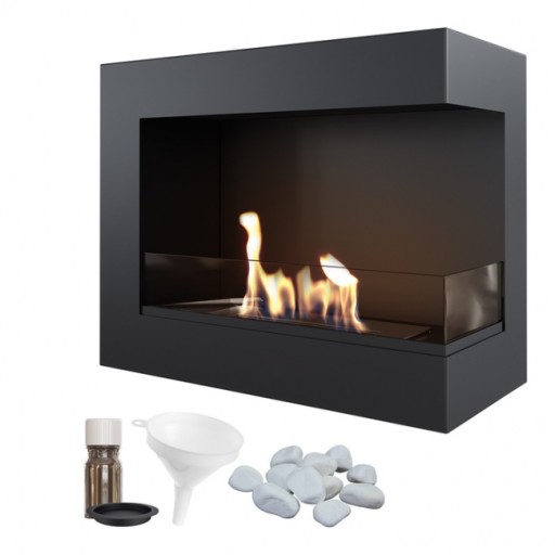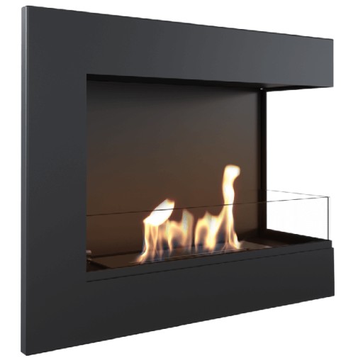 - Ochronna szyba osłaniająca ogień z dwóch stron.