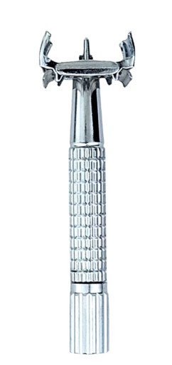 - wymiana żyletki poprzez otwieranie skrzydełek ( pokrętło na końcu rączki )