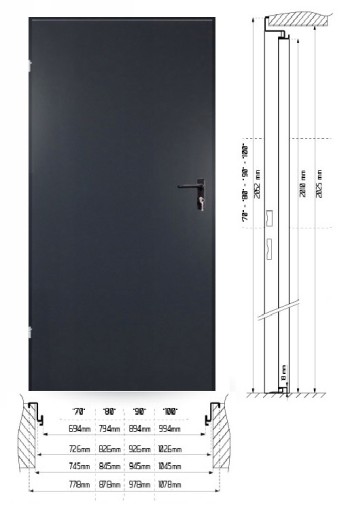 Skrzydło drzwiowe występuje w szerokościach "70", "80", "90", oraz "100" na innych aukcjach. Drzwi techniczne przeznaczone do pomieszczeń gospodarczych. Drzwi dobrze sprawdzają się w pomieszczeniach o podwyższonej wilgotności. Drzwi pomalowane farbą podkładową Ral i nadają się do ponownego pomalowania.