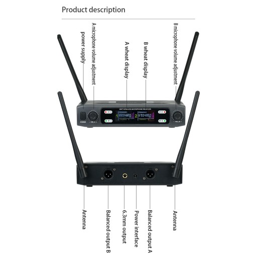 [Konstrukcja dwukanałowa]: Można używać 2 ręcznych mikrofonów bezprzewodowych w tym samym czasie, nie zakłócając się nawzajem
