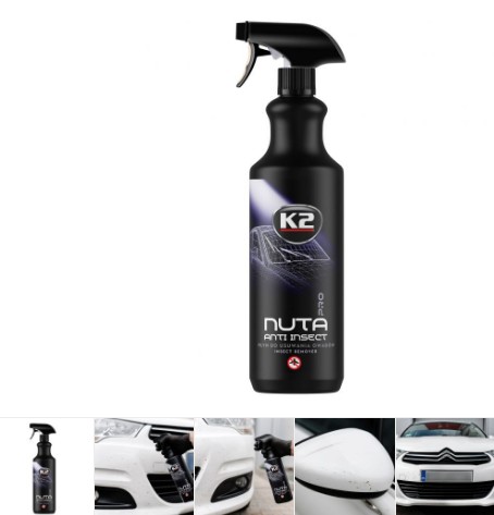 K2 NUTA Anti Insect PRO to profesjonalny, bezpieczny i gotowy do użycia środek do usuwania resztek owadów z powierzchni lakieru samochodowego, zderzaków, lusterek oraz reflektorów. Idealnie sprawdza się jako płyn do usuwania owadów z szyb. Zaprojektowany tak, aby wydać i wygrać wojnę z tysiącami owadzich pozostałości, które szpecą wygląd auta.