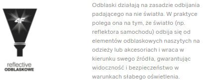 - odblaskowe detale typu reflective zapewniają widoczność po zmroku