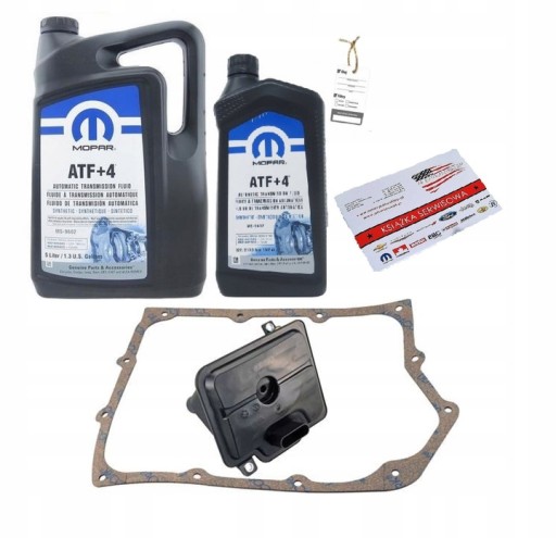 Oryginalny olej MOPAR do automatycznych skrzyń biegów ATF +4 w zestawie z zmiennikiem filtra skrzyni biegów 62TE (FSF-CH-005 ) + uszczelka miski skrzyni biegów