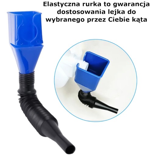 Wygodny lejek z wężem świetnie nadaje się do wlewania paliwa, oleju, wody, płynów w trudno dostępnych miejscach.