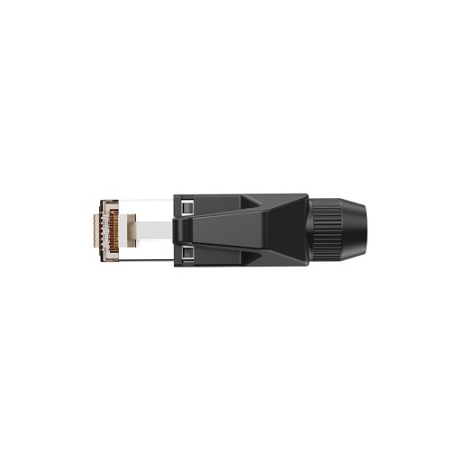 Wtyk RJ45 do montażu na kablu, wytrzymała obudowa, pozłacane styki, wymaga samodzielnego zaciśnięcia wkładu RJ45.
