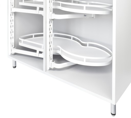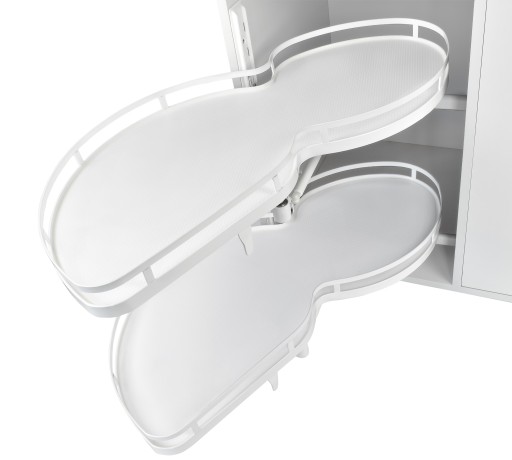 Kosze narożny typu nerka do szafek to praktyczne rozwiązanie, które pomaga w optymalnym wykorzystaniu przestrzeni, organizacji, łatwym dostępie do przechowywanych przedmiotów oraz poprawie wyglądu wnętrza szafki. Składa się dwóch niezależnie od siebie działających półek co pozwala maksymalnie wykorzystać przestrzeń w głębi szafki.