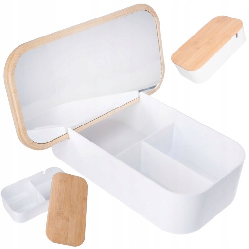ORGANIZER NA KOSMETYKI z lusterkiem łazienkowy pojemnik z 3 przegrodami