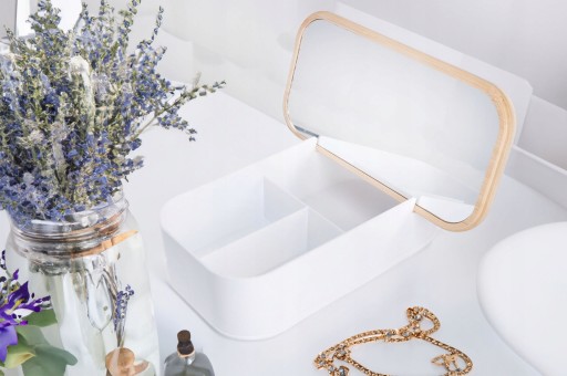 ✅ Praktyczny pojemnik - lusterko z pojemnikiem posiada trzy przegrody, które pozwalają na przechowywanie biżuterii, kosmetyków i innych drobiazgów w jednym miejscu.
