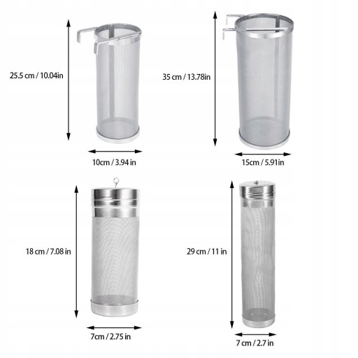 Designed for home-made brewing, the filter keeps hops from reducing impurities, increases the filtration level of the fermentation broth, and provides a purer flavor and aroma. Stainless steel mesh for fine filtration of 300 microns. With hooks, it is very convenient to use.