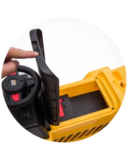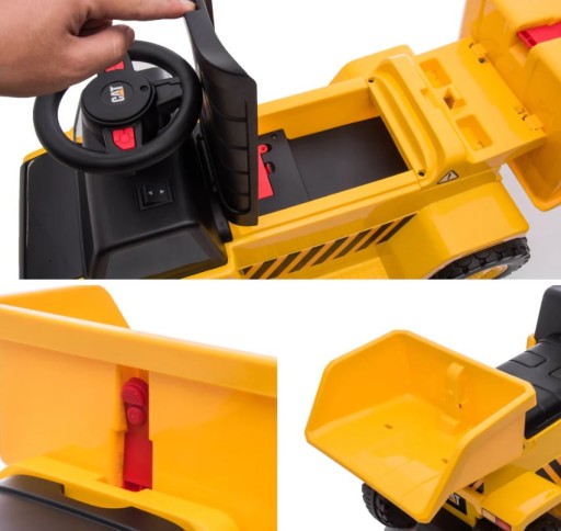 Akumulator 6V i mocny napęd zapewni bezpieczną prędkość dla dziecka . Realistyczne i ekscytujące wrażenia z jazdy wywrotką CAT dla dzieci do 25 kg max. obciążenia.