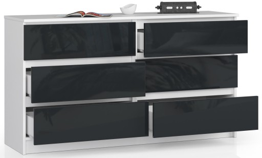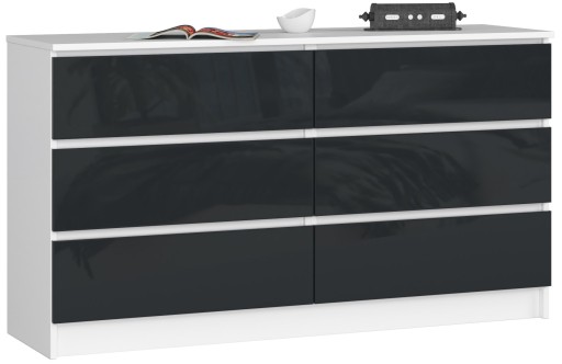KOMODA MŁODZIEŻOWE K140 6 SZUFLAD BIAŁY MAT - GRAFIT AKRYL WYSOKI POŁYSK