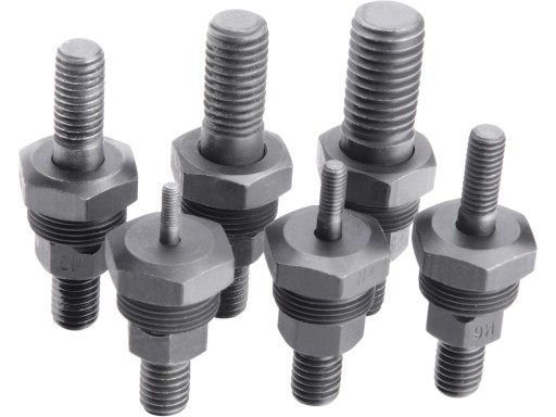W zestawie znajdują się głowice w rozmiarach M3, M4, M5, M6, M8, M10 oraz M12, wykonane z wytrzymałego materiału CrMoV, który zapewnia długą żywotność i wysoką odporność na zużycie. Każda głowica została solidnie wykonana, co gwarantuje niezawodność oraz precyzję podczas pracy z różnorodnymi materiałami.