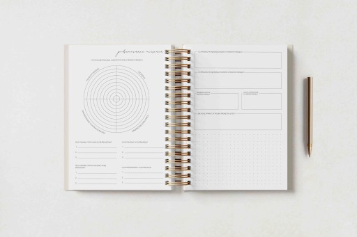 - Podsumowanie miesiąca – po każdym zakończonym miesiącu miejsce na ocenę swoich działań i samopoczucia w przebytym miesiącu. Sprawdź co udało się zrobić, co trzeba dokończyć, nad czym popracować. Napisz co sprawiło Ci największą radość lub sprawiło trudność, tak aby każdy kolejny miesiąc był lepszy.