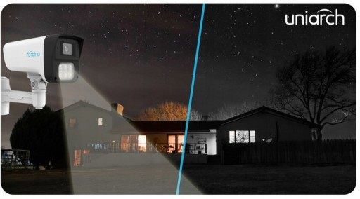 Kamera Uniarch IPC-B213-APF40W należy do urządzeń serii Dual Light, które umożliwiają nagrywanie kolorowego obrazu również w nocy.