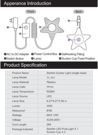 Inteligentna lampa basenowa LED w kształcie rozgwiazdy