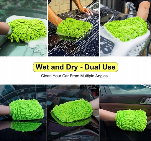 Made from extra-plush microfiber that holds plenty of water and soap, it dunks any car into a thick lather for the ultimate scraping and swirl-free washing experience. How to use it 1. Use two buckets: one filled with 5 gallons of water and 1-3 ounces    of car wash soap, and the other filled with plain water. 2. Rinse your car, then clean in a straight line with soapy gloves. 3. After cleaning a panel or two, dip the dirty gloves in a bucket of clean water to loosen the embedded dirt, then wring    dry on the ground. 4. Go back to the soap bucket and continue the car wash. 5. Rinse off all soap and grime from the car, then dry with a high-quality microfiber towel.