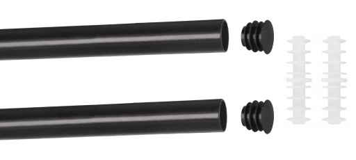 ✔️ Zestaw zawiera: rury, wsporniki, końcówki do karniszy, zaślepki oraz łączniki do rur, śruby do montażu.