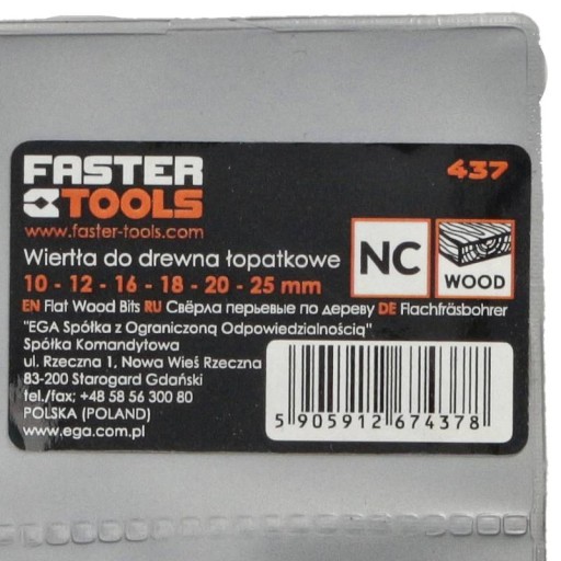 Funkcjonalne Wiertła do drewna łopatkowe FASTERTOOLS 437 to komplet wysokiej jakości wierteł w zakresie pracy: 10-12-13-16-18-20-25 mm.