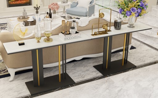 Luksusowy stół konsolowy: Ten elegancki stół konsolowy będzie najlepszym wyborem, jeśli szukasz mebli do przyprawy wejścia lub salonu, wykonany ze spiekanego blatu kamiennego, charakteryzuje się naturalnymi fakturami i pięknem marmuru, wyższą wytrzymałością i gęstością, nieprzepuszczalną, anty zarysowaniami powierzchnią na wysoką temperaturę do 1200℃.