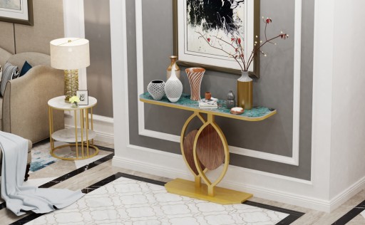 Luksusowy stół konsolowy: Ten elegancki stół konsolowy będzie najlepszym wyborem, jeśli szukasz mebli do przyprawy wejścia lub salonu, wykonany ze spiekanego blatu kamiennego, charakteryzuje się naturalnymi fakturami i pięknem marmuru, wyższą wytrzymałością i gęstością, nieprzepuszczalną, anty zarysowaniami powierzchnią na wysoką temperaturę do 1200℃.
