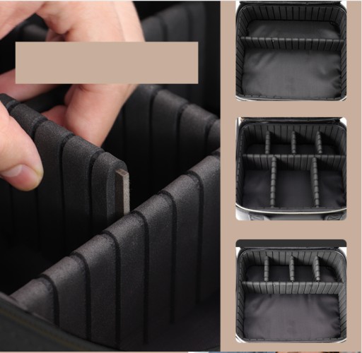 ➡️ Zawartość: przestrzeń z regulowanymi przegródkami, wyjmowana kieszeń oraz lustro LED
