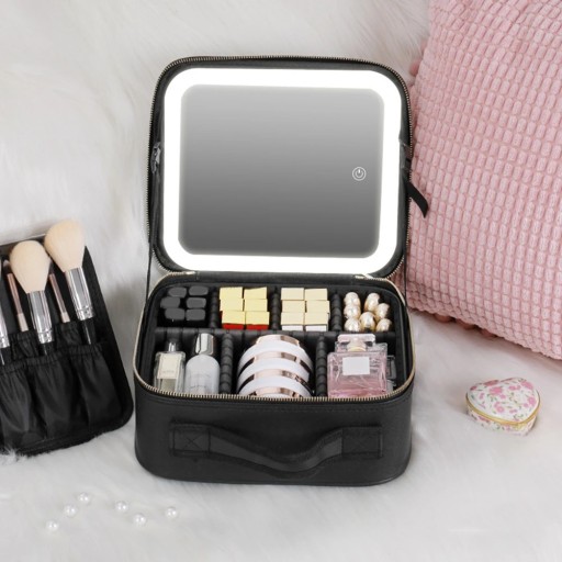 Wznieś swój makijaż na wyższy poziom dzięki naszej wyjątkowej kosmetyczce z podświetleniem LED. Koniec z szukaniem dobrze oświetlonego miejsca lub poleganiem na słabym oświetleniu pokoju hotelowego - dzięki naszej kosmetyczce zawsze będziesz mieć idealne oświetlenie do bezbłędnej aplikacji makijażu.