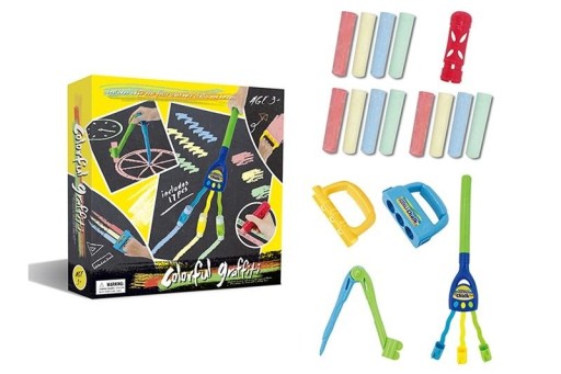 W zestawie: 12 kred w 4 kolorach, 4 uchwyty do kredy, cyrkiel, wym. Opk: 26 x 27,5 x 5,5 cm., 3+