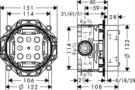HANSGROHE ЭЛЕМЕНТ СКРЫТОГО МОНТАЖА ДЛЯ ОБОРУДОВАНИЯ 01800180