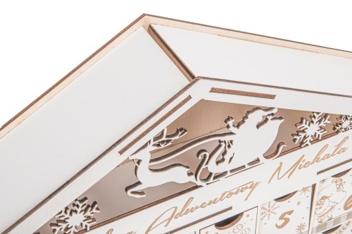 KALENDARZ ADWENTOWY dla dzieci Domek na ŚWIĘTA OZDOBA DREWNIANA IMIĘ GRAWER