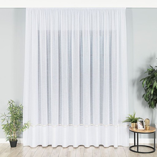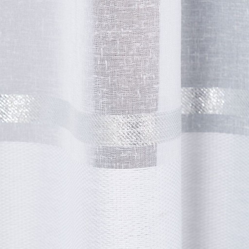 Przedmiotem sprzedaży jest nowoczesna lekko nabłyszczana firana z wysokiej jakości tkaniny typu len natura batystopodobny ze srebrnym pasem -Nowość!