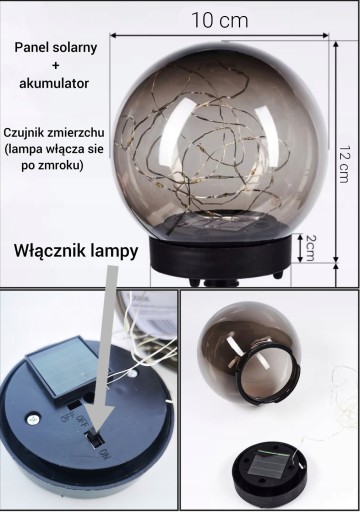 - Znicz solarny w kształcie kuli z czujnikiem zmierzchu