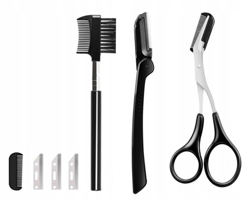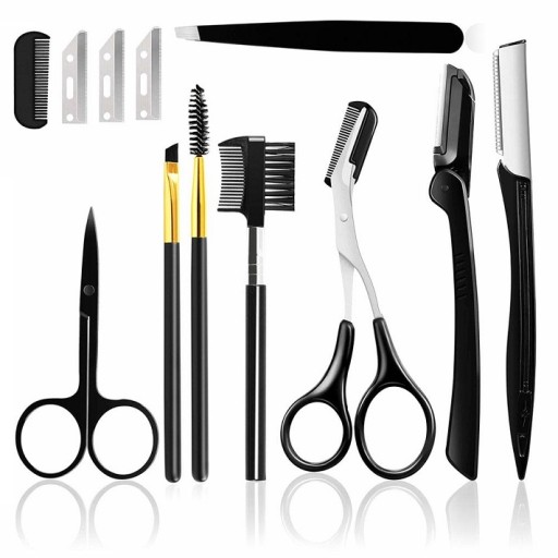 - Zestaw 11 profesjonalnych narzędzi do pielęgnacji brwi i rzęs.