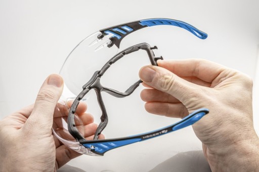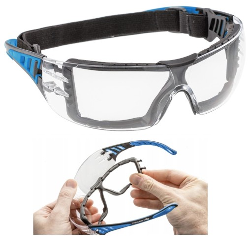Miękka wyściółka wokół soczewek i zdejmowana opaska zapobiegają zsuwaniu się i przesuwaniu okularów. Zauszniki wykonane są z poliwęglanu, a końcówki zauszników z wysokiej jakości materiału TPR (termoplastycznej gumy).