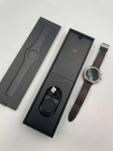 Smartwatch używany, w bardzo dobrym stanie, jedynie na pasku widać ślady noszenia. W pełni sprawny.